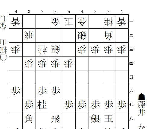 感想行方尚史五段との一戦。行方五段とは過去2戦戦っており1勝1敗。☗7六歩☖8四歩☗5六歩という出だし。中飛車かと思われたが、続いて☖5四歩と位を取らせなかったことで力戦形になった。この将棋は藤井六段が序盤からとんでもない駒組みを見せる。1...
