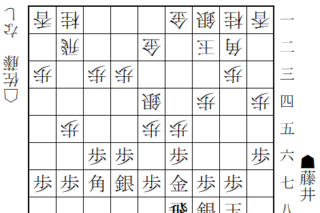 藤井四段の四間飛車に深浦三段が天守閣美濃を示した。☖4三銀(24手目)が早く、後に言われる「対左美濃藤井システム」が成熟していく最中の将棋と思われる。そう言えば『藤井システム』(毎日コミュニケーションズ)に書かれた対左美濃藤井システムはいつ頃確立していったのだろうか。終盤の研究手☖8三金で有名な室岡克彦六段—藤井猛五段(棋聖戦)は1994年10月だ。とは言え本譜も6筋の位を取ること、安易に☖8二玉と入玉しないこと等、「対左美濃藤井システム」のエッセンスが感じ取れる。唯一、☖2二飛と利かされたような感じなのが不満だ。