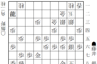 小阪昇六段との順位戦。ここまで藤井四段は4勝1敗、小阪六段は2勝3敗。小阪六段は振り飛車党で、四間飛車対右銀急戦における☗8三角に「小阪流」の名を残している(参考図)。
