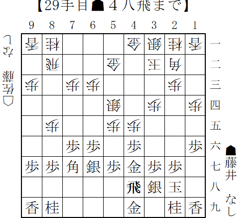 棋譜並べ1991/11/29 真田圭一三段—藤井猛四段(新人王戦) 感想『藤井猛全局集 竜王獲得まで』では真田三段とは2局目の将棋。前局は銀冠穴熊対銀冠という持久戦だったが、本局は藤井四段の後手四間飛車に真田三段は右銀急戦を仕掛けた。☖4三銀型に舟囲い~右銀急戦という極めてシンプルな仕掛けで、アマチュアでも... 2023年01月30日棋譜並べ