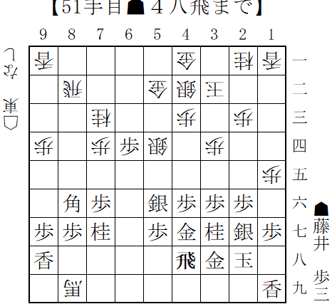 棋譜並べ1995/5/26 森内俊之八段—藤井猛六段(IBM杯) 感想佐藤康光前竜王を破ってIBM杯準決勝を森内俊之八段と戦う。森内俊之八段とは過去3戦全敗であり、前回のIBM杯でも準決勝で森内八段に敗れた。本局は自戦解説掲載譜。この将棋は序盤にやや駆け引きがある。まず3手目の☗4八銀は振り飛車決め打ちの... 2024年07月16日棋譜並べ